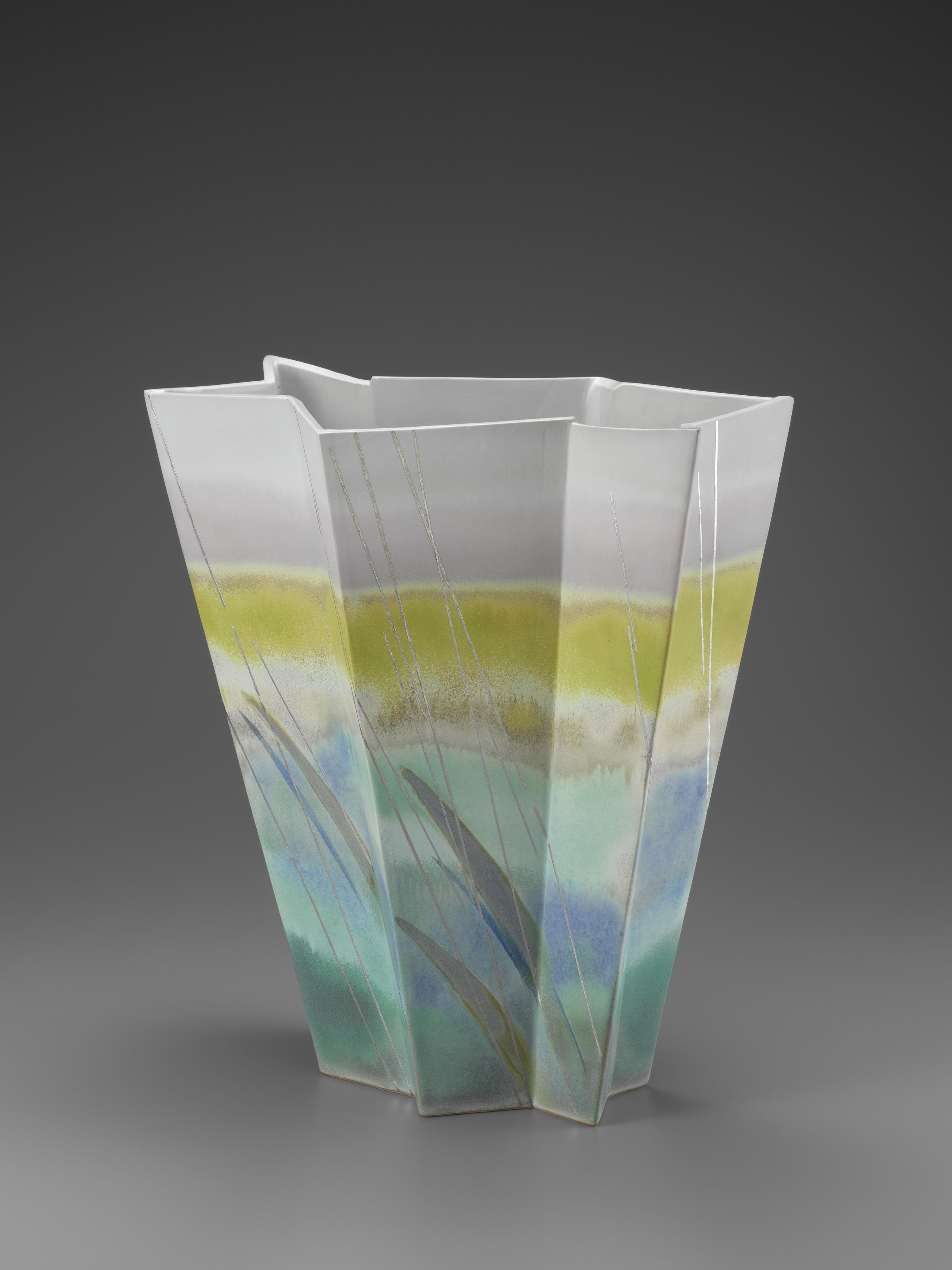 > 釉描プラチナ彩花器「翠雨」