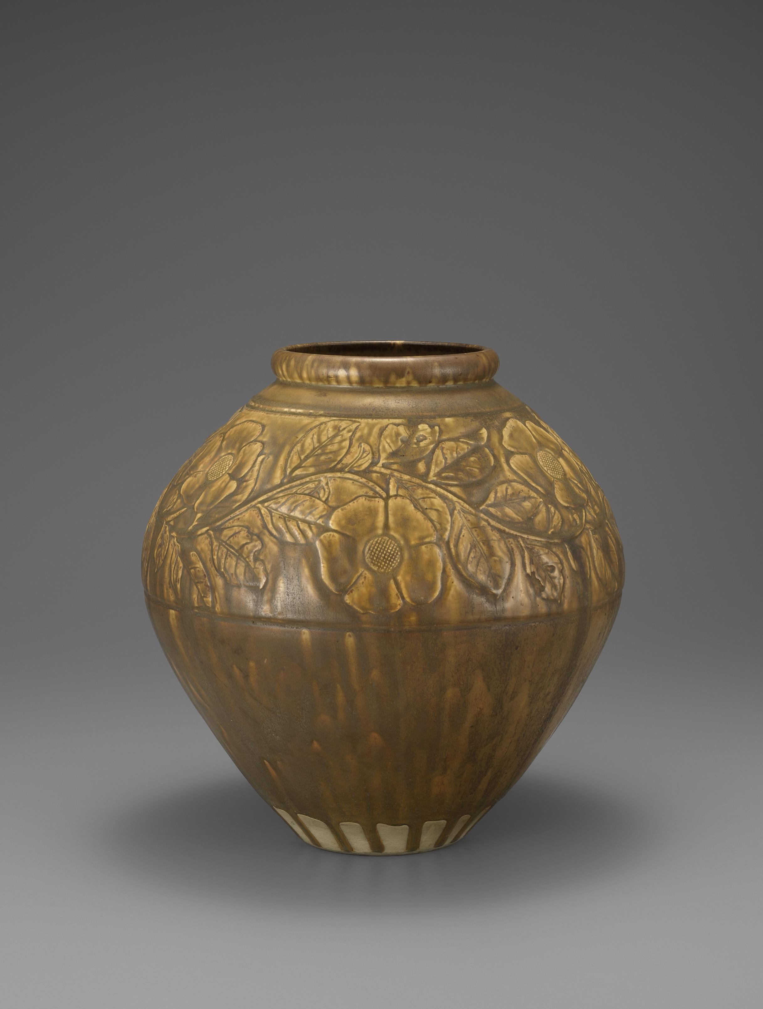 鉄釉彫文花瓶